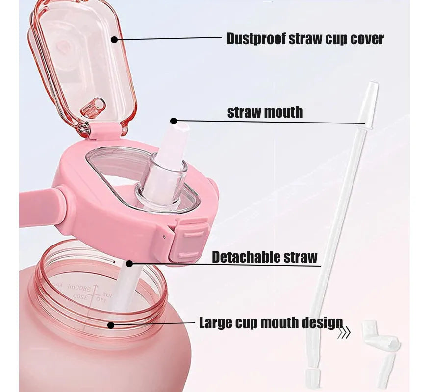Mantente hidratado: Con citas de inspiración únicas y marcador de tiempo y escala de capacidad, la botella con correa de transporte es ideal para medir tu ingesta diaria de agua, te ayuda a mantenerte hidratado y beber suficiente todo el día. Mango duradero y agarre antideslizante que te ayudan a llevar una botella de agua grande para hacer deporte más fácilmente.