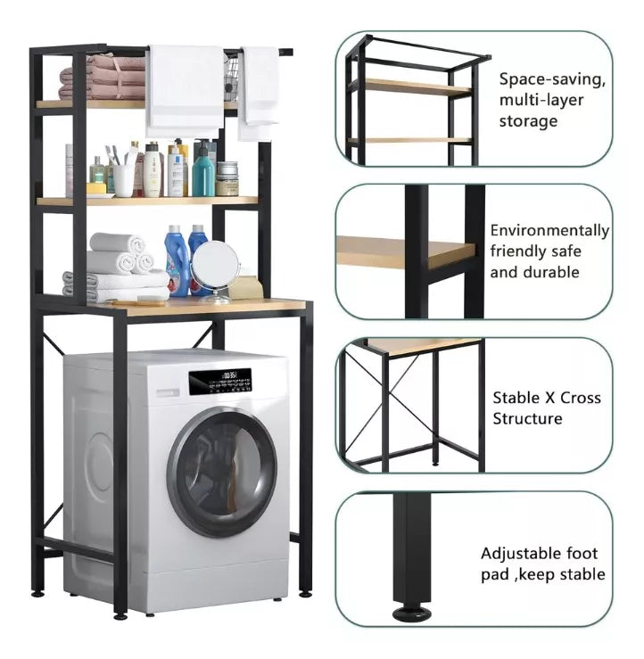 Estantería Mueble Acero Y Madera Multiuso P/ Lavarropa Baño
