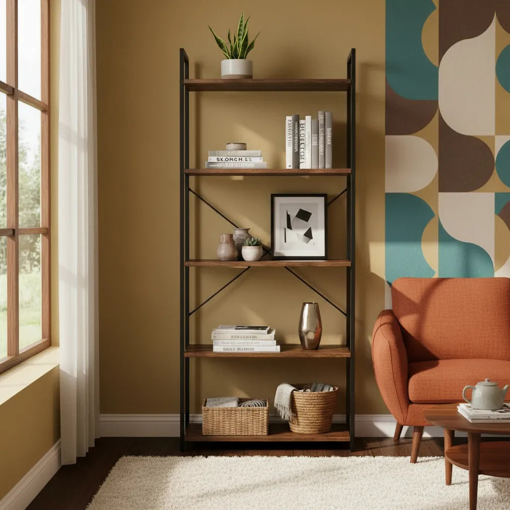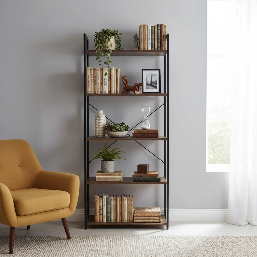 Con cinco estantes amplios y sólidos, permite organizar libros, decoraciones, plantas y más, maximizando el aprovechamiento de cada rincón. Su diseño, que combina funcionalidad y estilo, la convierte en un elemento ideal para salones, oficinas o incluso cocinas, aportando un toque acogedor y elegante.