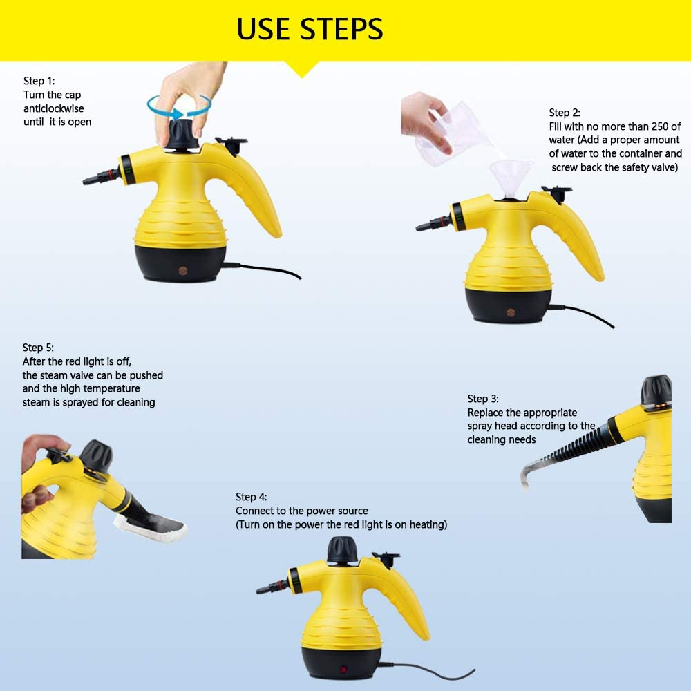 Potente vapor caliente: 900-1050 W de potencia. Emite vapor caliente potente a presión (250-270 F) hasta 15-20 minutos con nuestro vaporizador de alta presión.