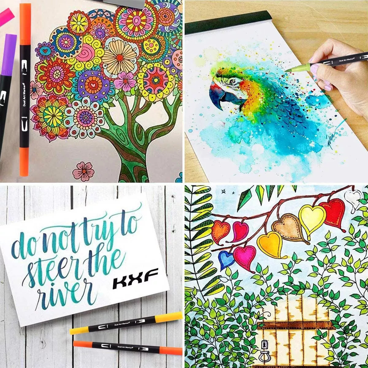 Set De 72 Marcadores Con Doble Punta Fina Y Pincel + Estuche