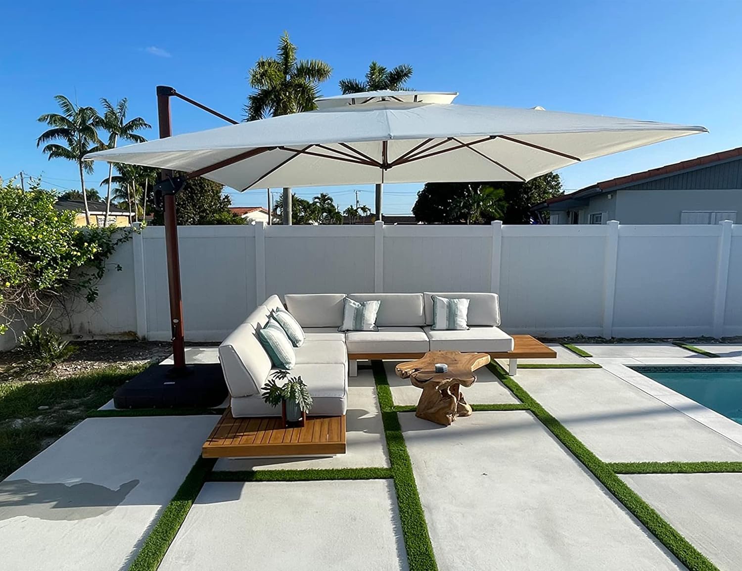 La sombrilla inclinada de 300 cm proporciona más protección solar para tus ambientes al aire libre, te mantiene fresco y cómodo, y es la mejor opción para tu jardín, patio, piscina, cubierta, playa, balcón, restaurante y todo el mundo.