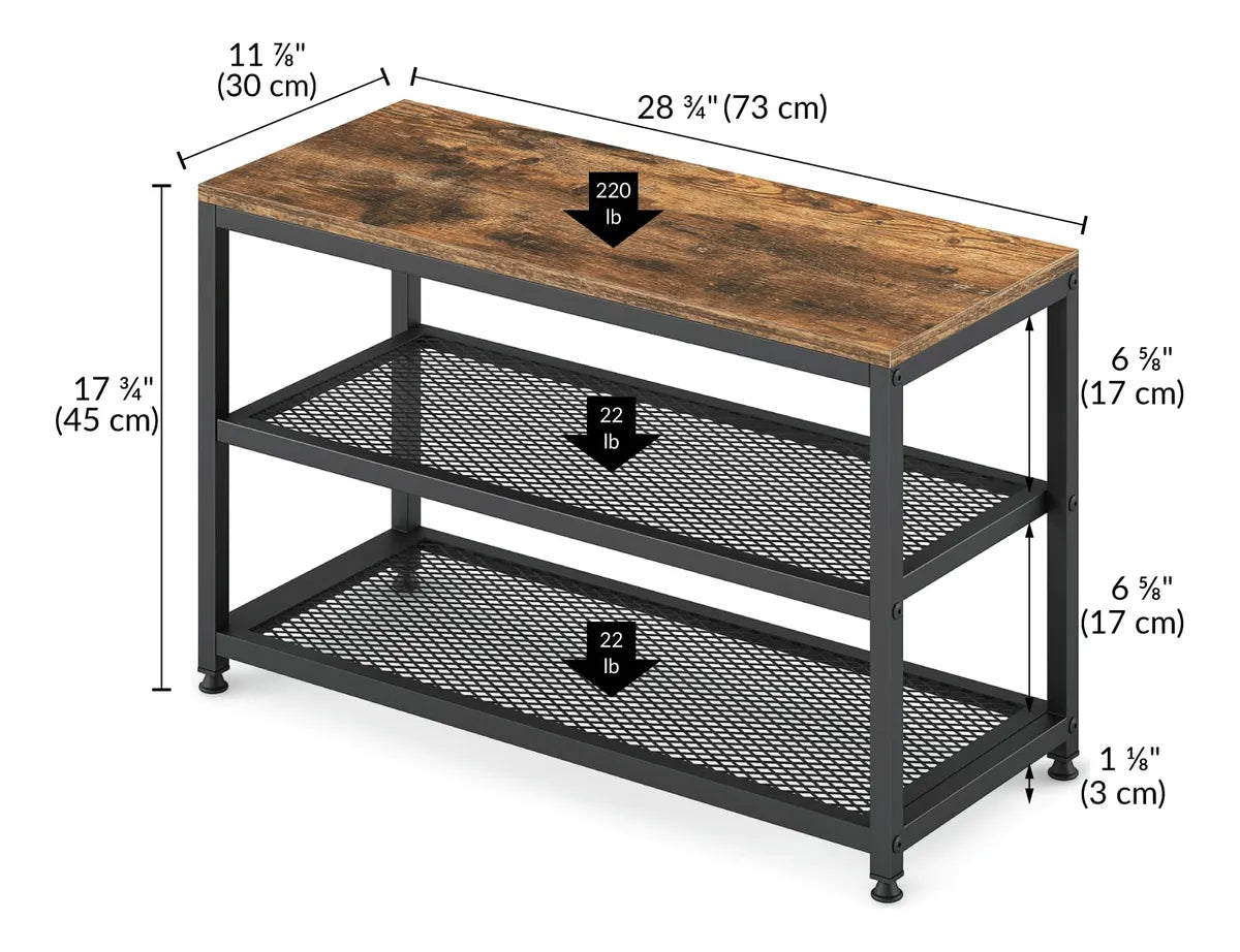 Además de ofrecer un espacio adecuado para tus zapatos, puede actuar como una mesa auxiliar en espacios pequeños, añadiendo versatilidad a su diseño. Su ligereza, con un peso de 7,98 kg, permite reubicarla sin complicaciones, adaptándose a tus necesidades.